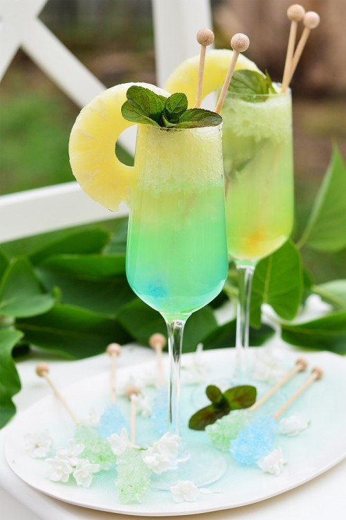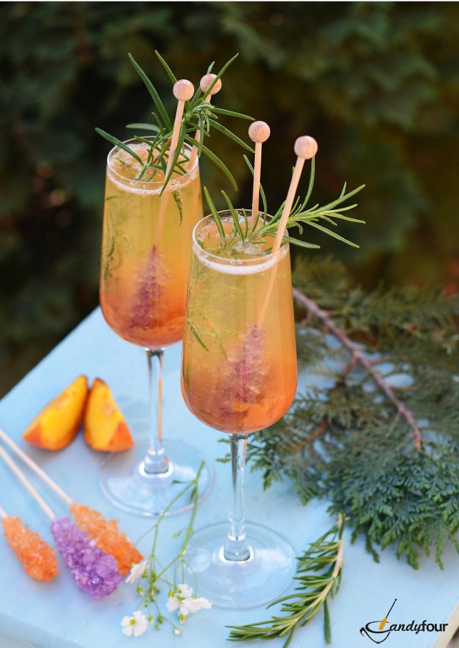 A kandispálcával ízesített mentás ananászkoktél receptje és a rozmaringos bellini is a kifoztuk.hu oldalán található.
