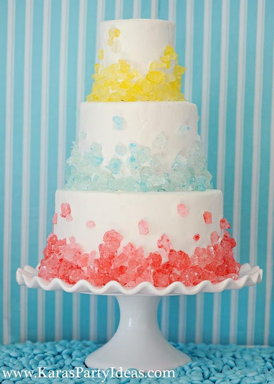 Néhány ötlet esküvői tortákra, amelyet színes kandiscukorral tettek különlegessé.